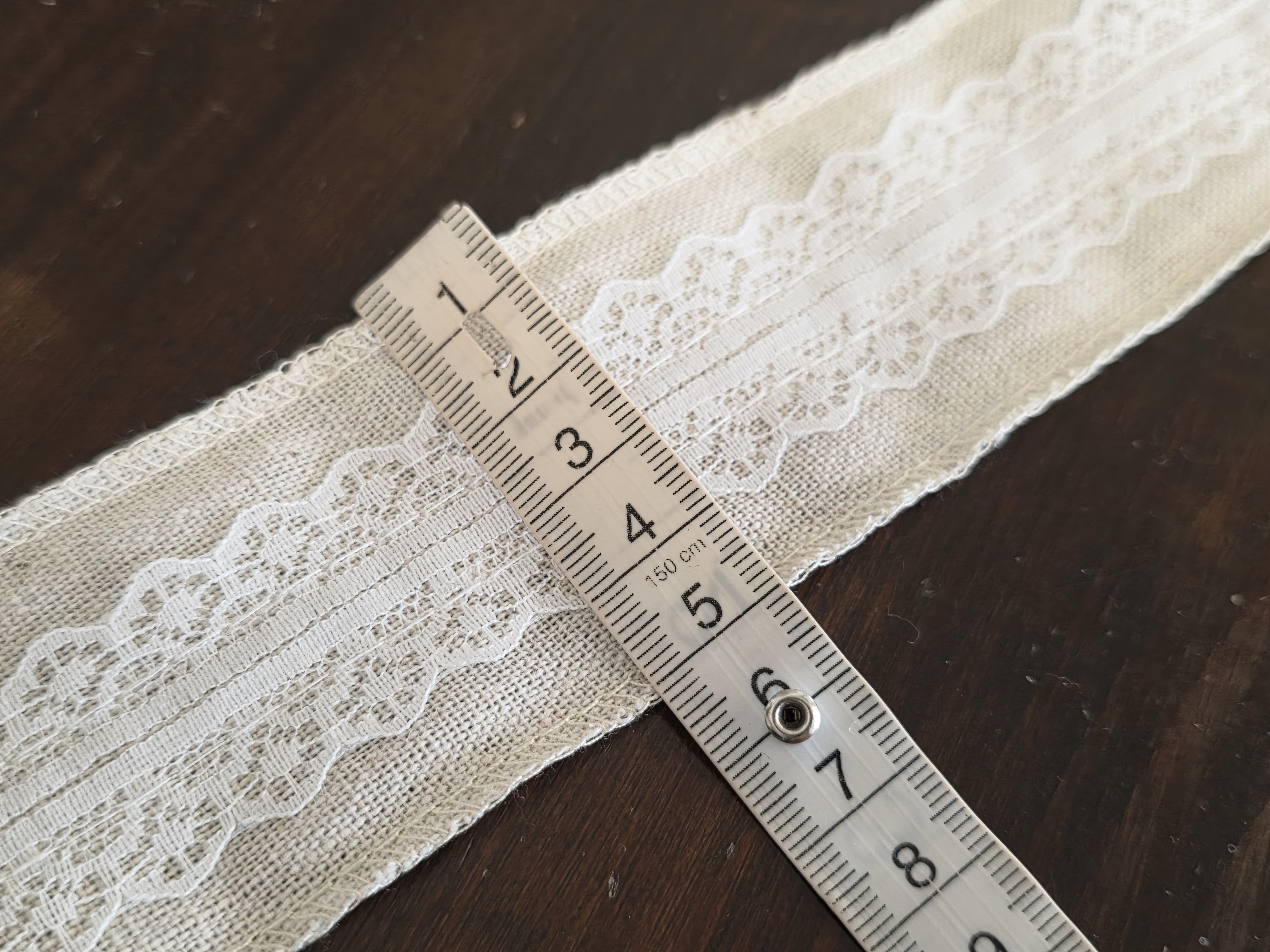 détail : dentelle cousue sur bande lin