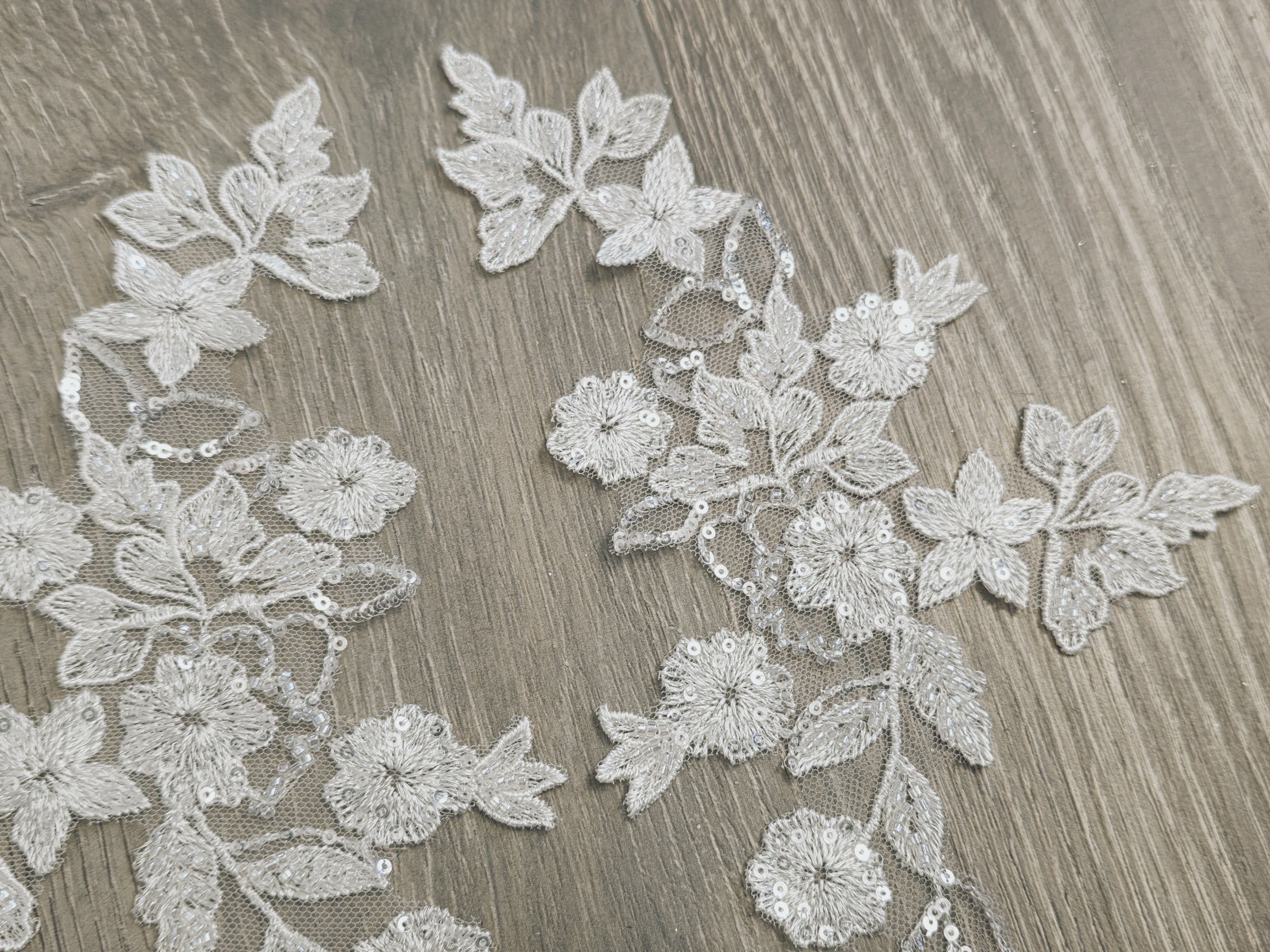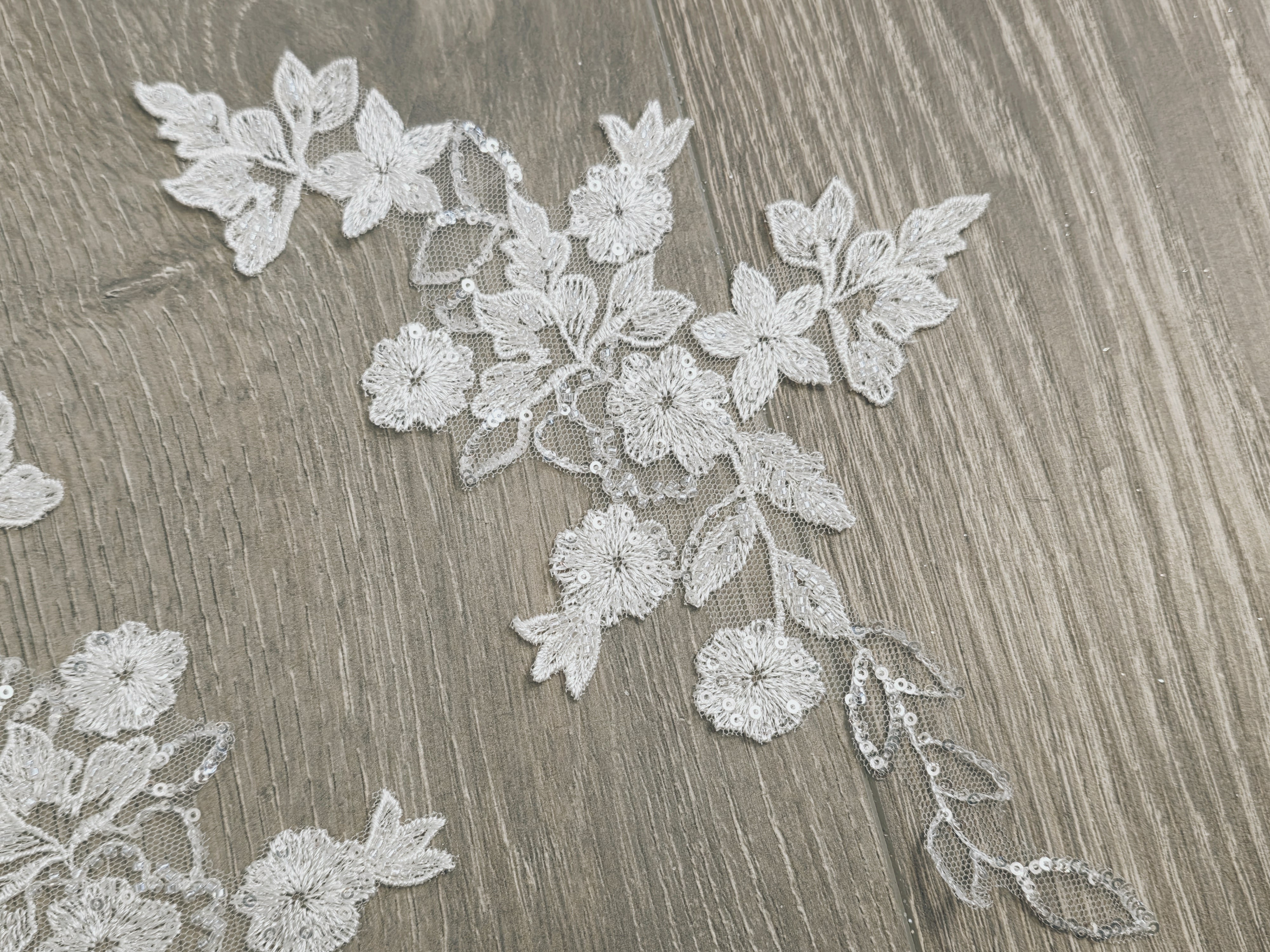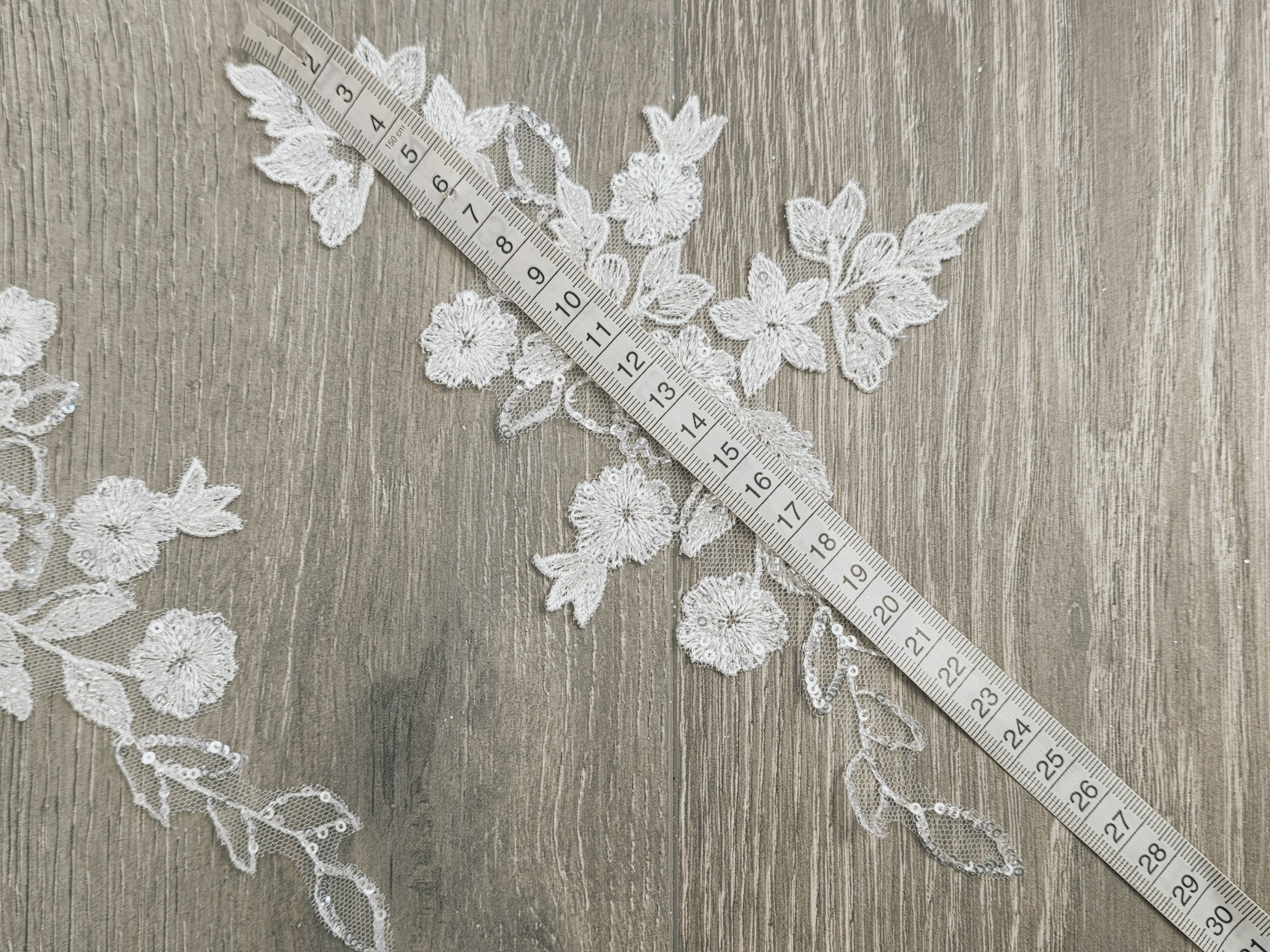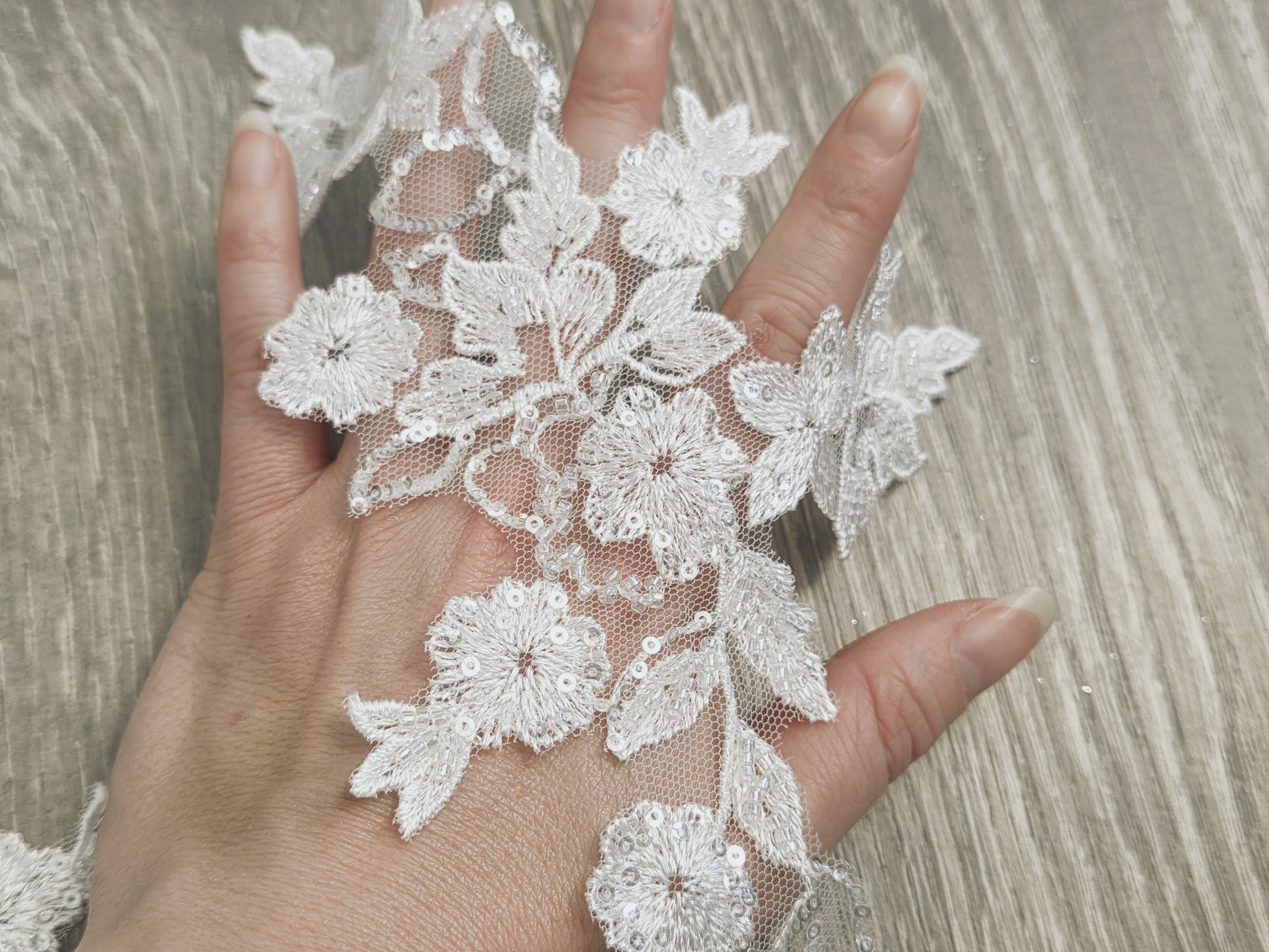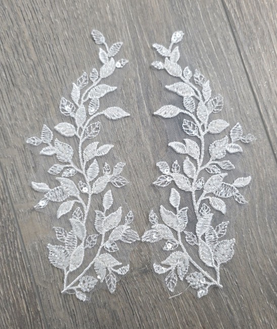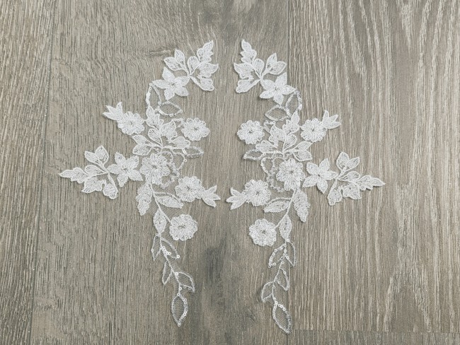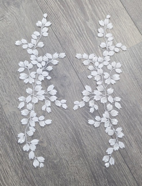 Parfait pour personnaliser une robe de mariée, un bustier, des manches, une ceinture ou un voile, cet appliqué apporte une touche couture et sophistiquée. Son design harmonieux permet une utilisation seule ou en paire miroir pour un rendu équilibré et professionnel.