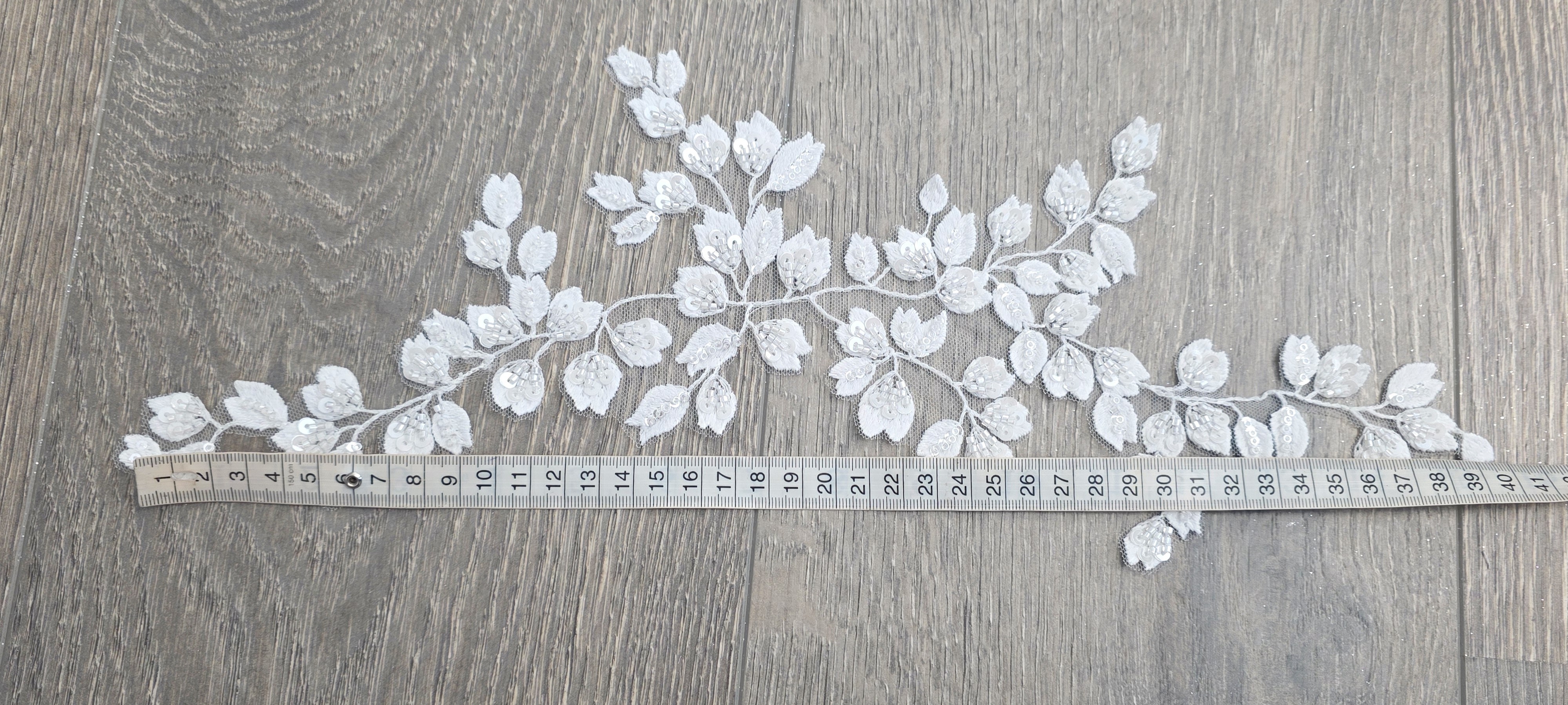 Grâce à sa base en tulle, cette applique est facile à coudre sur tous types de tissus (tulle, satin, mousseline, etc.).