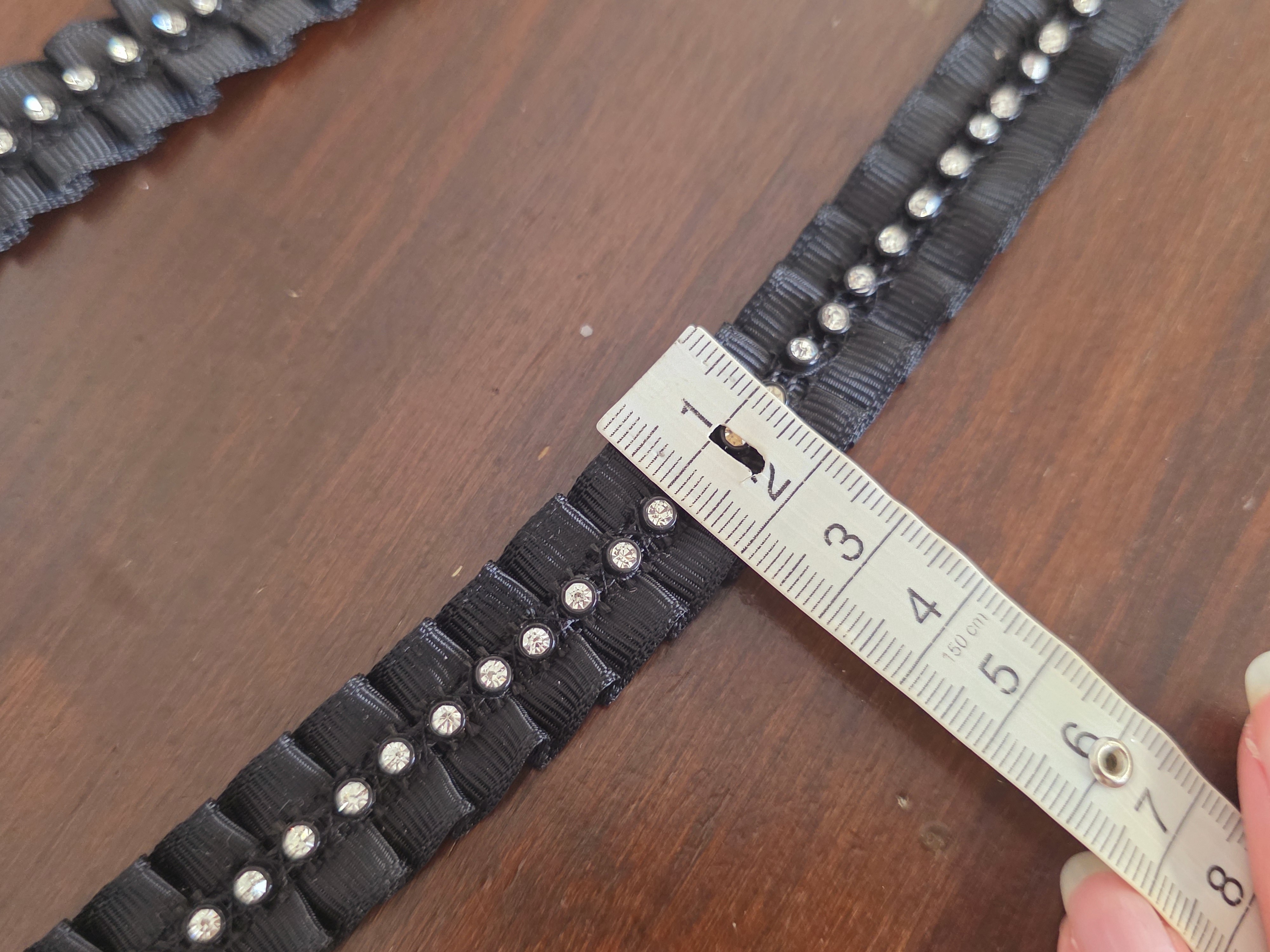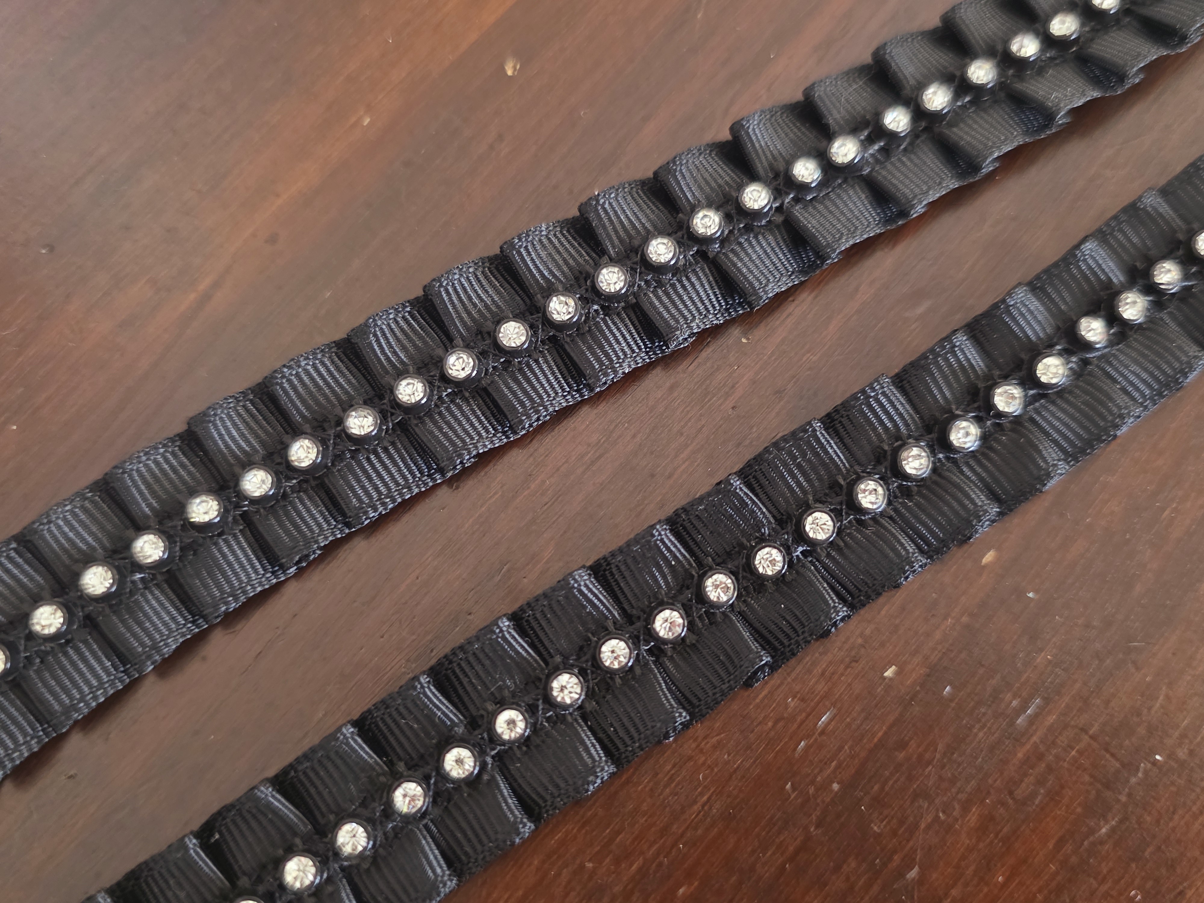 Galon noir avec strass ruban plissé coupon de 2 mètres