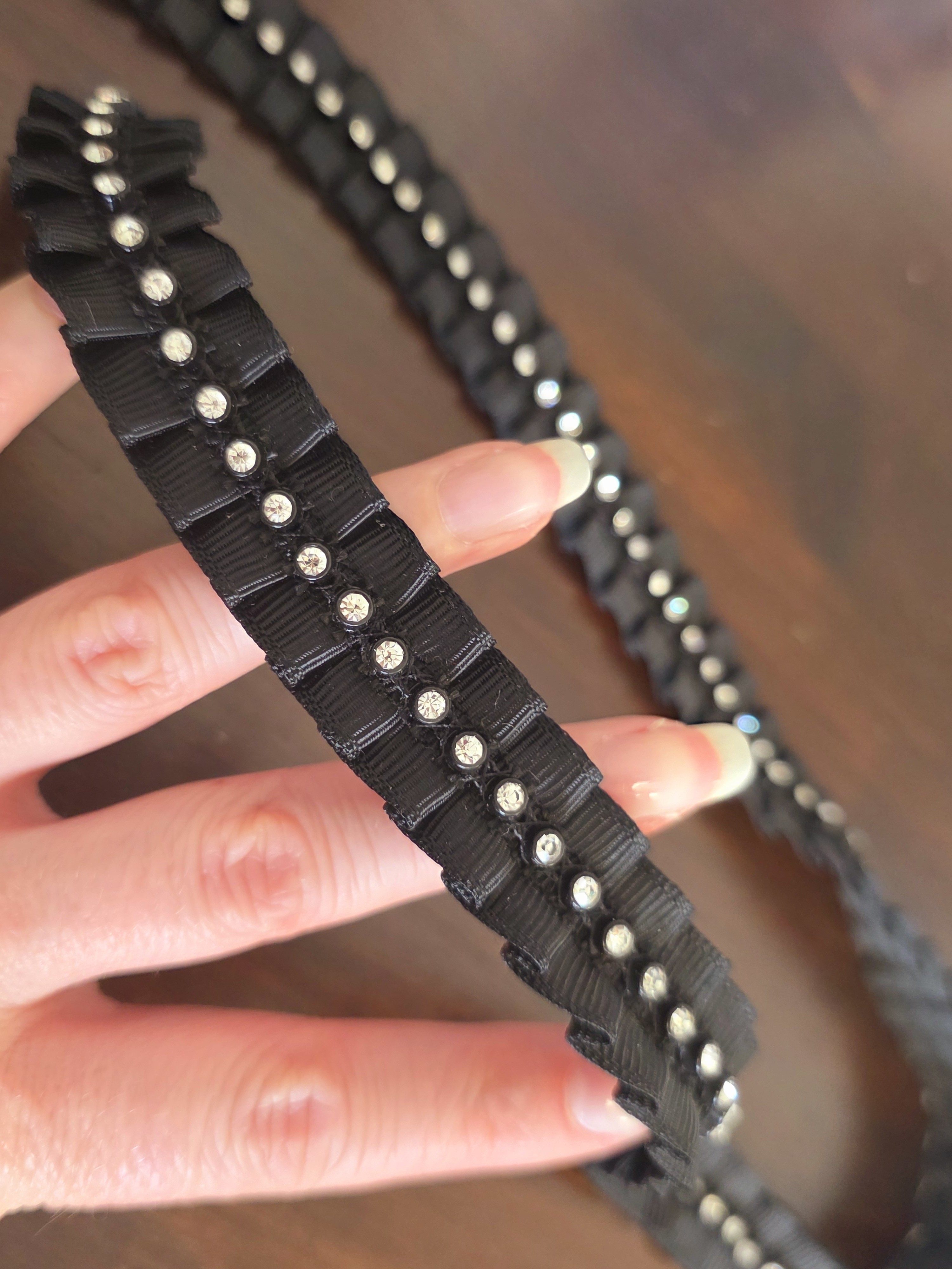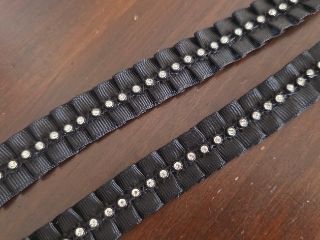 Galon ruban noir plissé avec strass