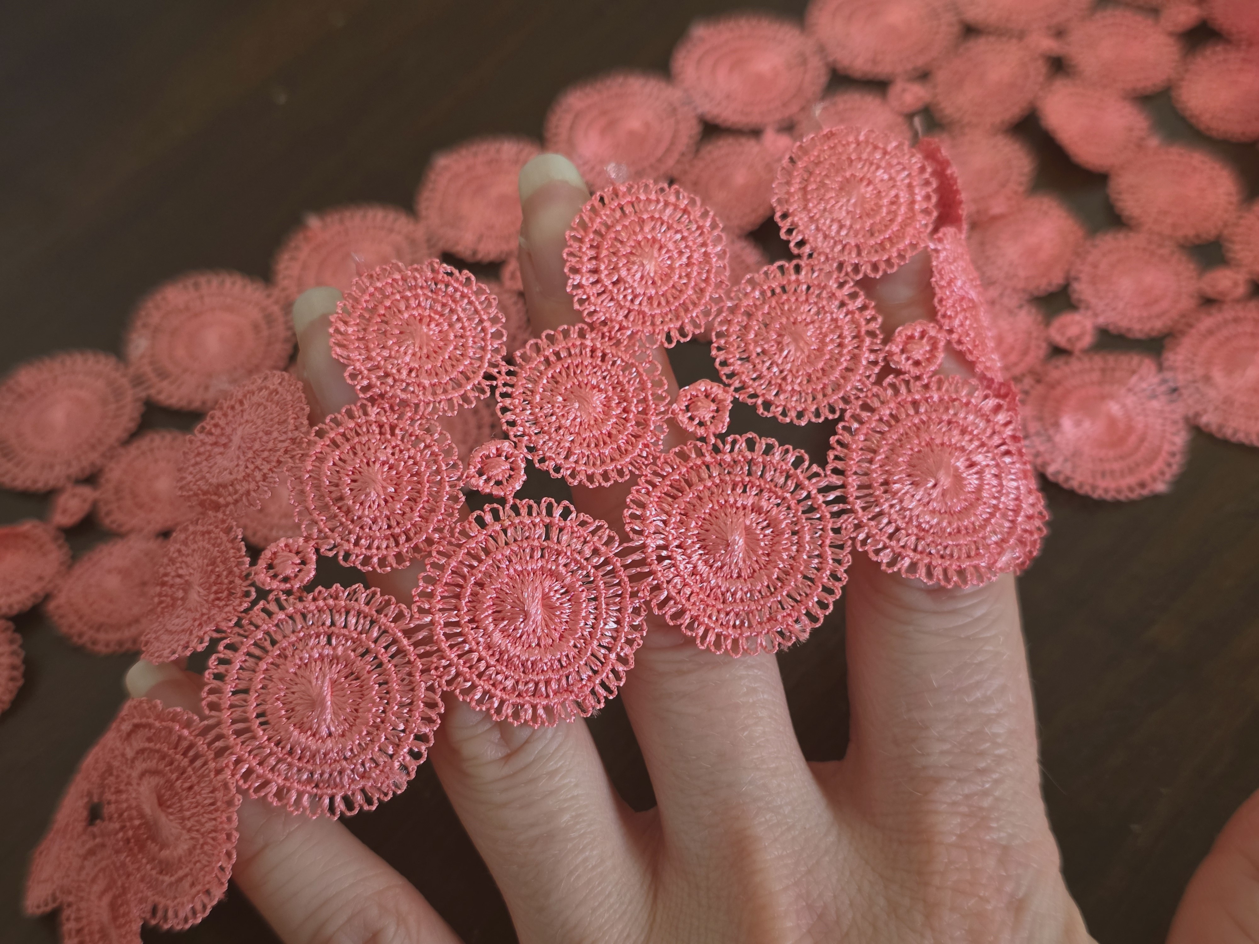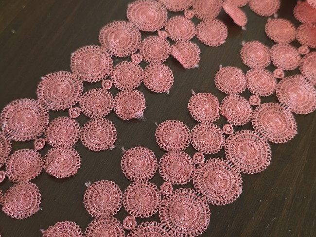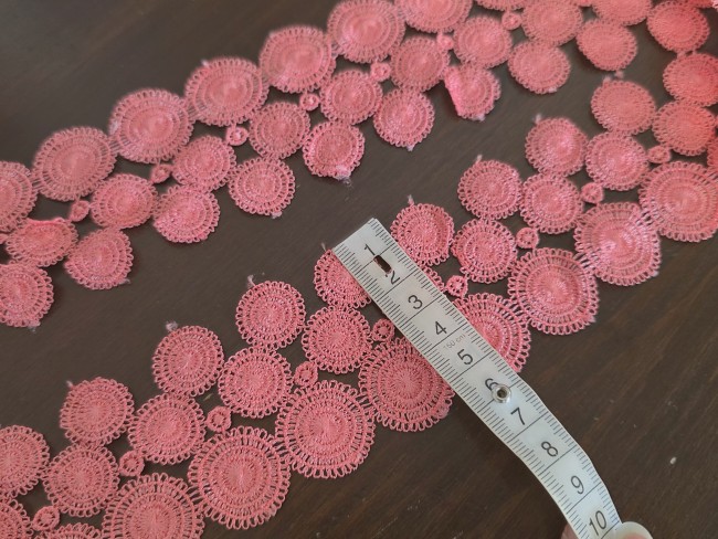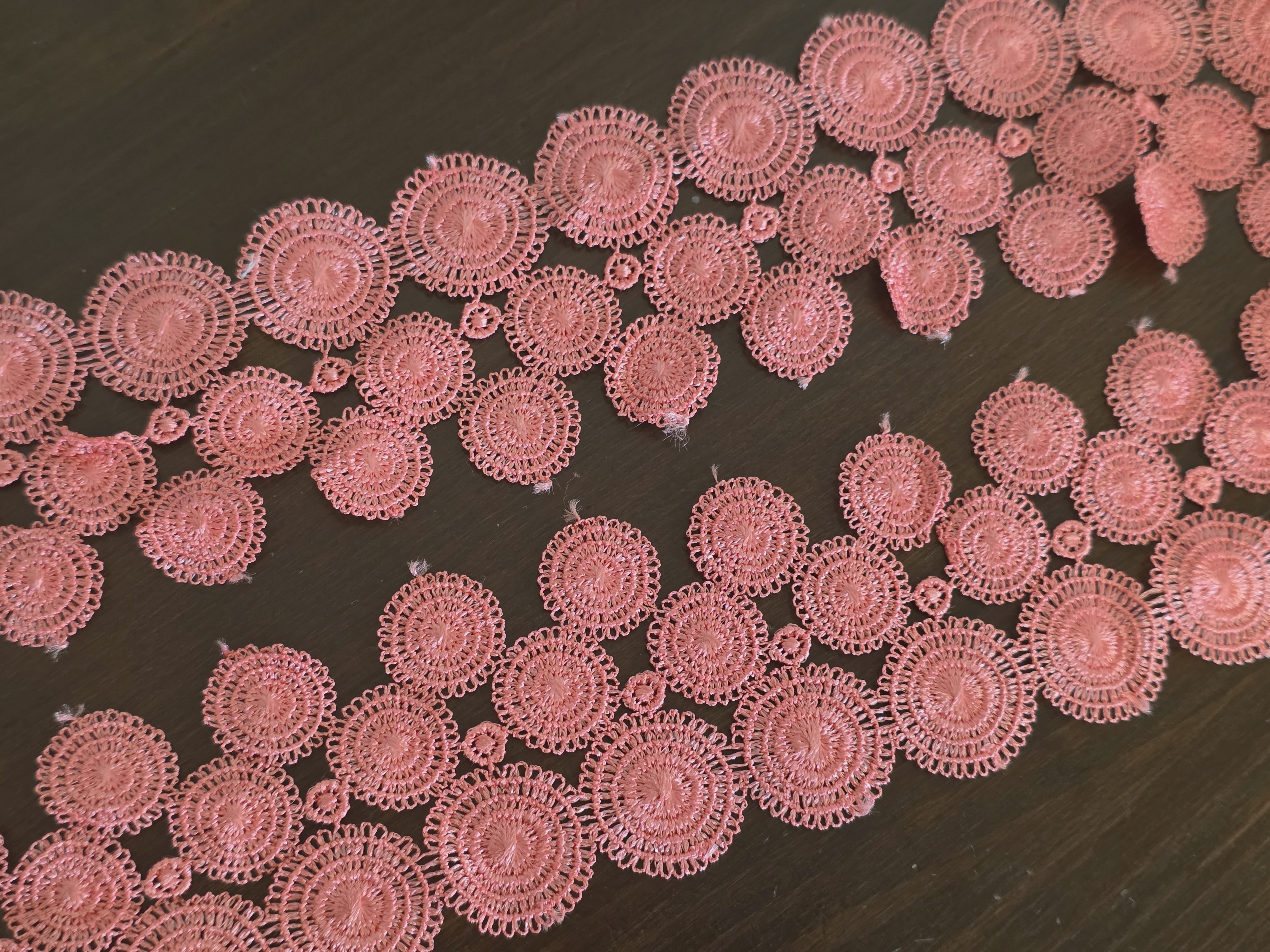 Galon rose corail dentelle mandala - Vendu au mètre -