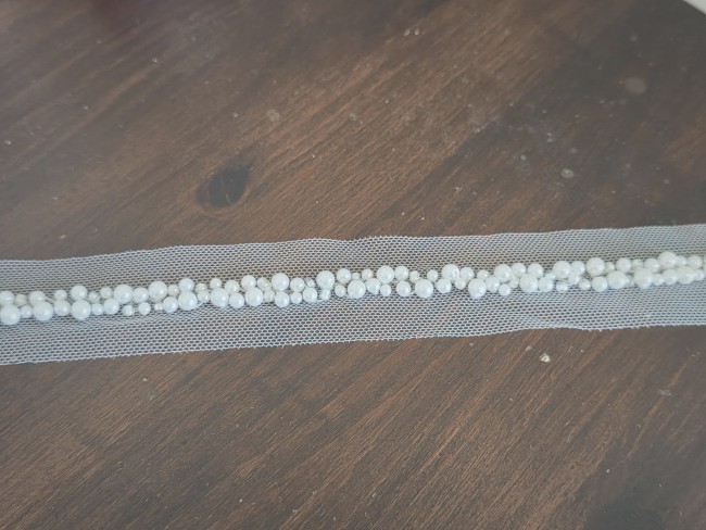 Apportez une touche d’élégance et de raffinement à vos créations avec ce galon délicatement orné de perles.