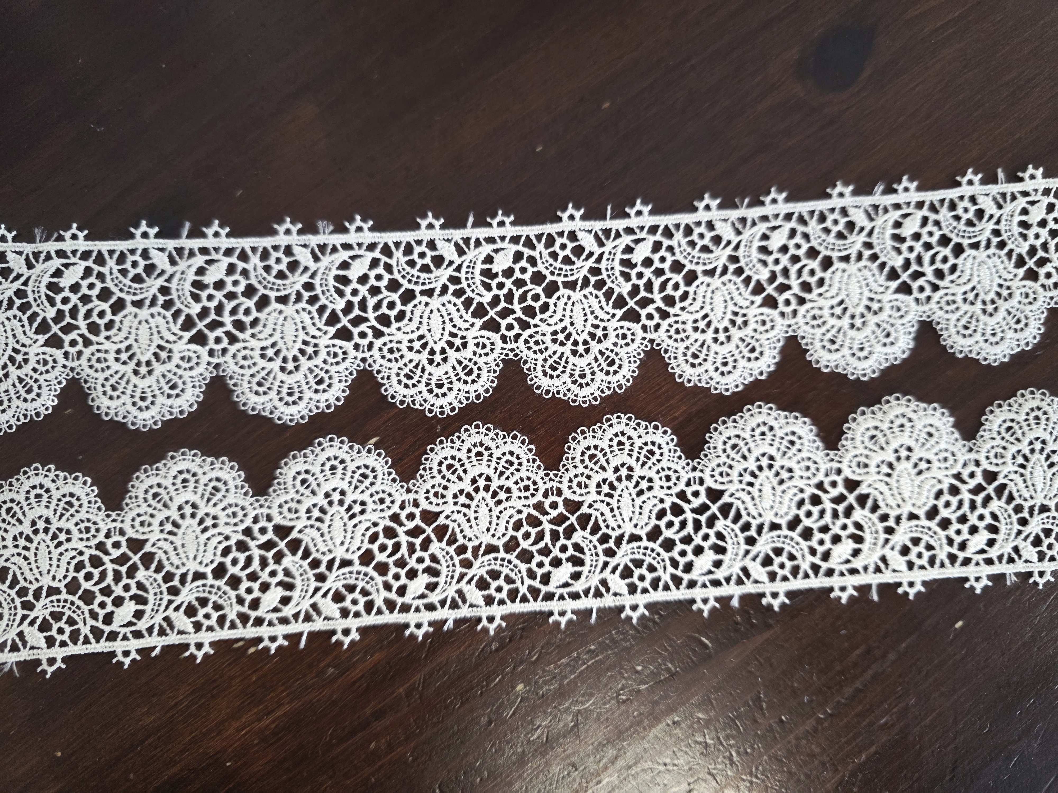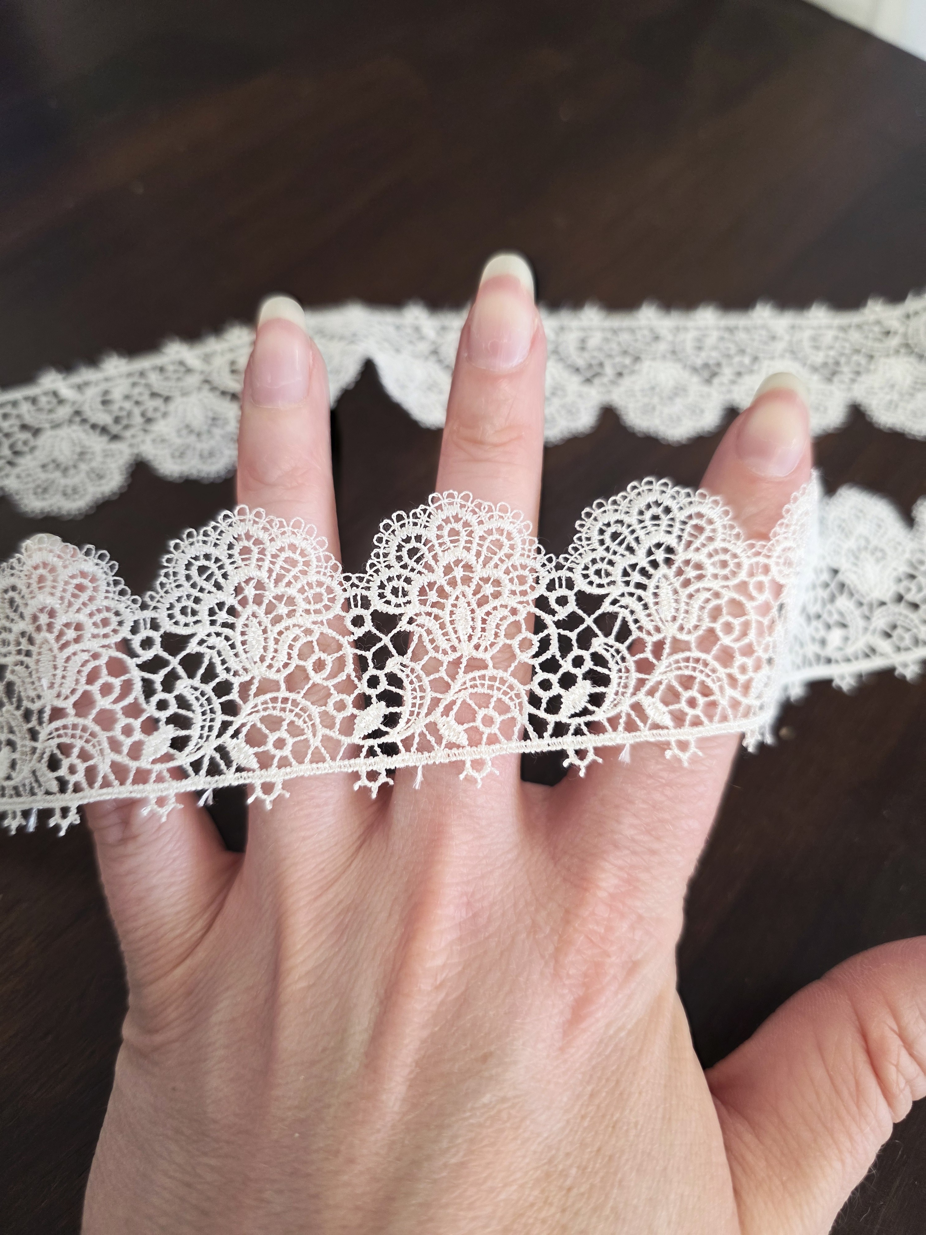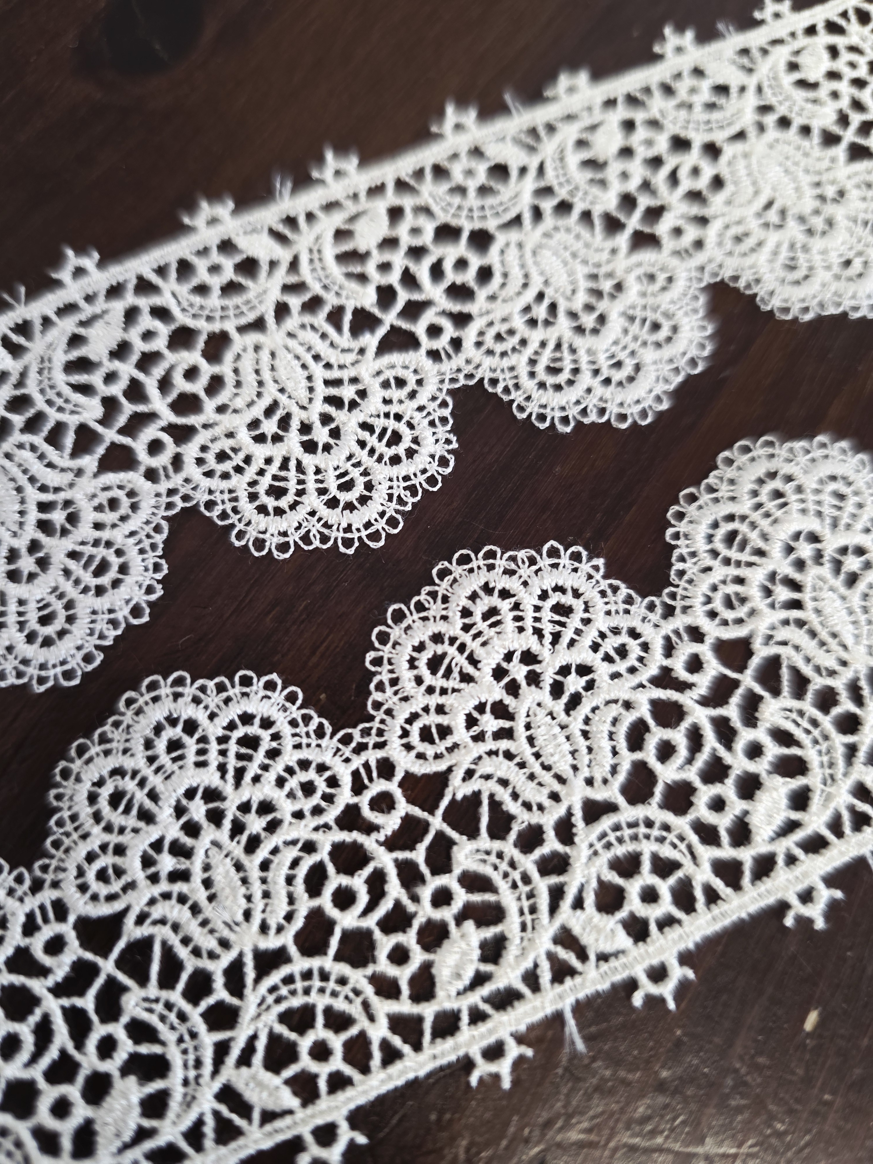 Fournitures pour coudre une robe de mariée. Dentelle, tissus, appliqués, galons, boutons. Robes et accessoires pour la mariée.