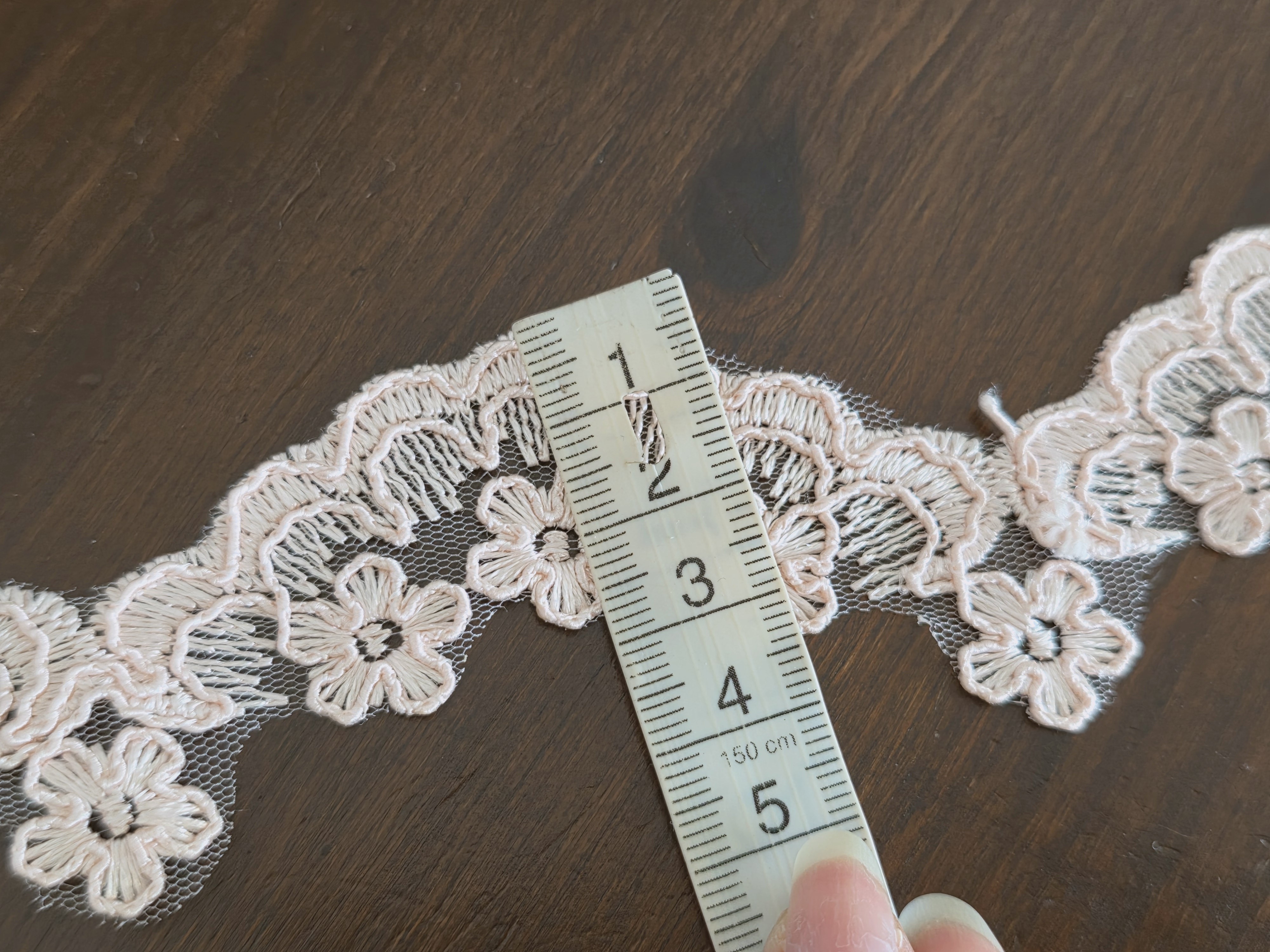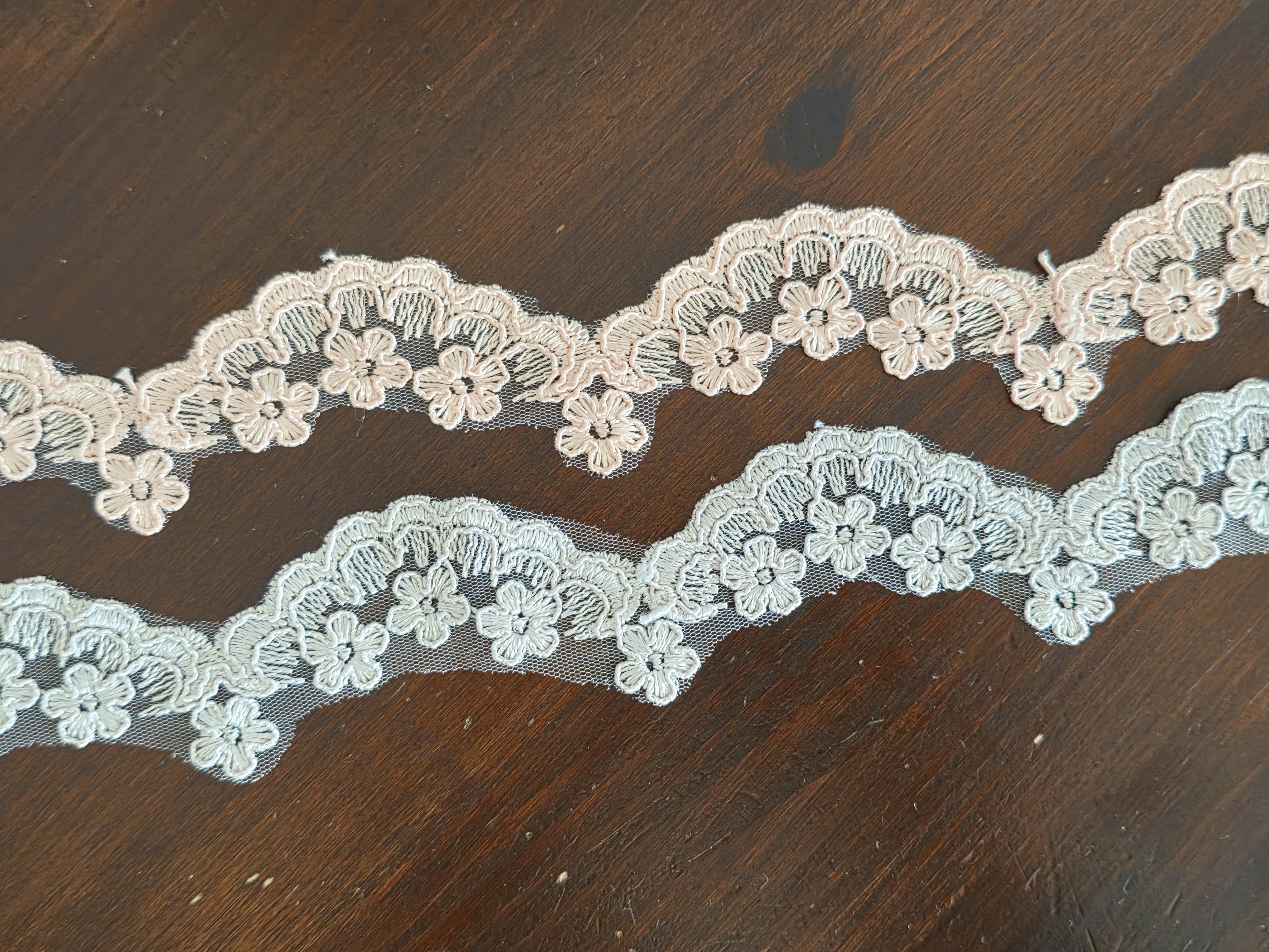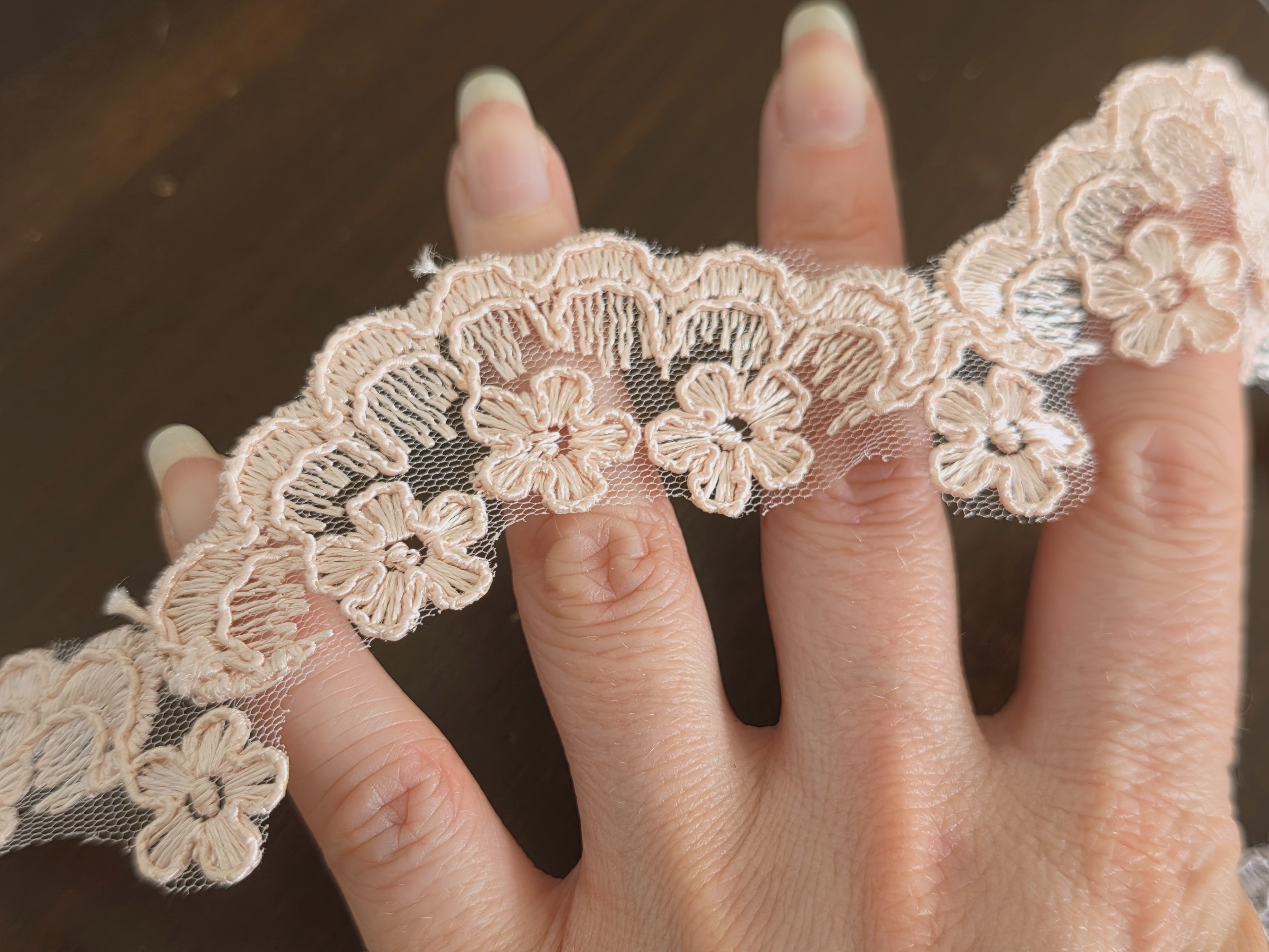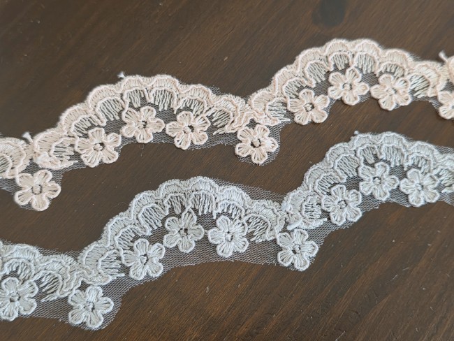 Galon en dentelle brodée sur tulle d’environ 3 cm de largeur au motif floral délicat et raffiné