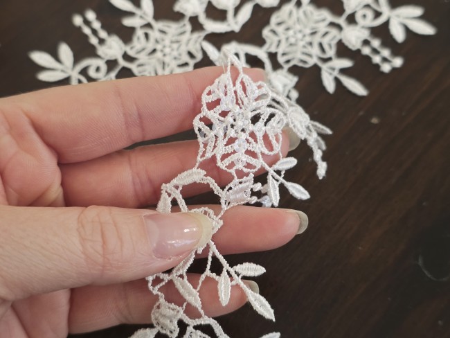 Galon Guipure Ivoire Clair Brillant à Sequins – Largeur 4 cm, au Mètre