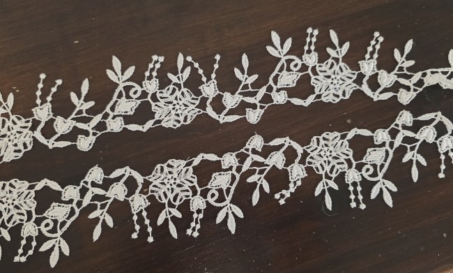 Fournitures pour coudre une robe de mariée. Dentelle, tissus, appliqués, galons, boutons. Robes et accessoires pour la mariée.