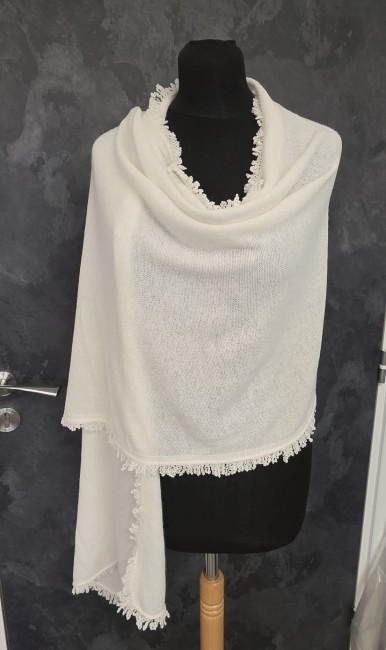 Étole mariée 100% cachemire ivoire – Châle mariage chaud et doux – 2m x 65cm – Étole cérémonie bord festonné – Accessoire mariée hive