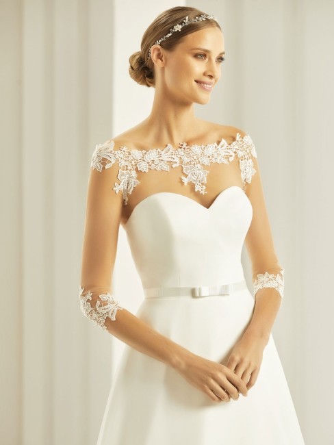 Boléro en dentelle ivoire manches longues pour mariée